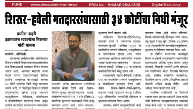 शिरूर–हवेली मतदारसंघासाठी ३४ कोटींचा निधी मंजूर