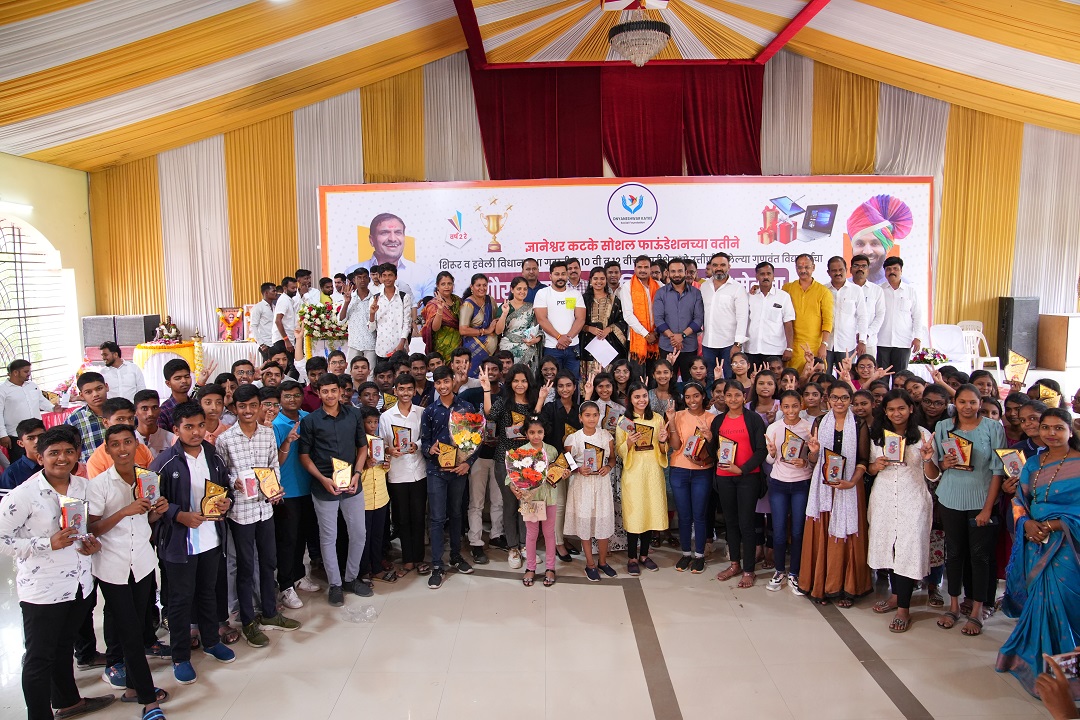 दहावी व बारावीच्या परीक्षेमध्ये उत्तीर्ण झालेल्या गुणवंत विद्यार्थ्यांचा गौरव करण्यात आला. प्रथम क्रमांक मिळवणाऱ्या विद्यार्थ्यांना लॅपटॉप, दुसरा क्रमांक मिळविणाऱ्या विद्यार्थ्यांना टॅब आणि तिसरा क्रमांक मिळवणाऱ्या विद्यार्थ्यांना मोबाईल फोन बक्षीस म्हणून देण्यात आला. उर्वरित सर्व गुणवंत विद्यार्थ्यांना स्मार्ट वॉच देण्यात आले. यासोबतच मेळाव्यादरम्यान सामाजिक जबाबदारी म्हणून गरजू व होतकरू विद्यार्थ्यांना शालेय साहित्यांचे वाटप देखील करण्यात आले.