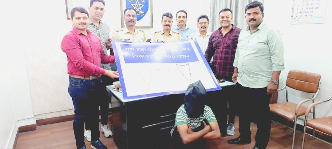 त्यानुसार विश्रांतवाडी पोलीस तपास पथकाने तपास सुरु केला होता. तपास सुरु असताना तपास पथकातील पोलीस अंमलदार शेखर खराडे, व संदिप देवकाते यांना त्यांचे बातमीदारामार्फत घरफोडीतील चोरटा हा शिवाजी चौक कळस येथे कळस येथे स्मशानभुमीमध्ये बसला असून त्याचे अंगात रेषा असलेला टी शर्ट व ट्रॅक पॅन्ट घातलेला असल्याची खात्रीशिर माहिती मिळाली. माहितीच्या आधारे तपास पथकाने सदर ठिकाणी सापळा रचून आरोपीला ताब्यात घेतले. त्याची अधिक चौकशी केली असता त्याने गुन्हा केल्याची कबुली दिली. त्याला अटक करून त्याचेकडून गुन्हयातील १ लाख ९ हजार ५०० किंमतीचे सोन्याचे दागीने व रोख रक्कम ९ हजार ८४० रुपये असा एकुण १ लाख १९ हजार ३४० रुपये किंमतीचा मुद्देमाल पोलिसांकडून हस्तगत करण्यात आला आहे.