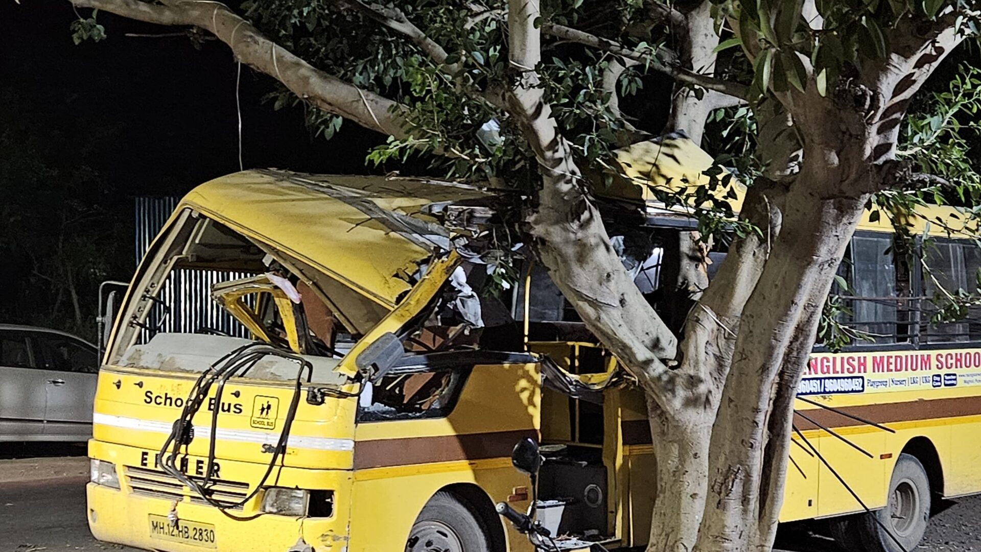 Video: वाघोलीजवळ स्कूल बस झाडावर आदळली