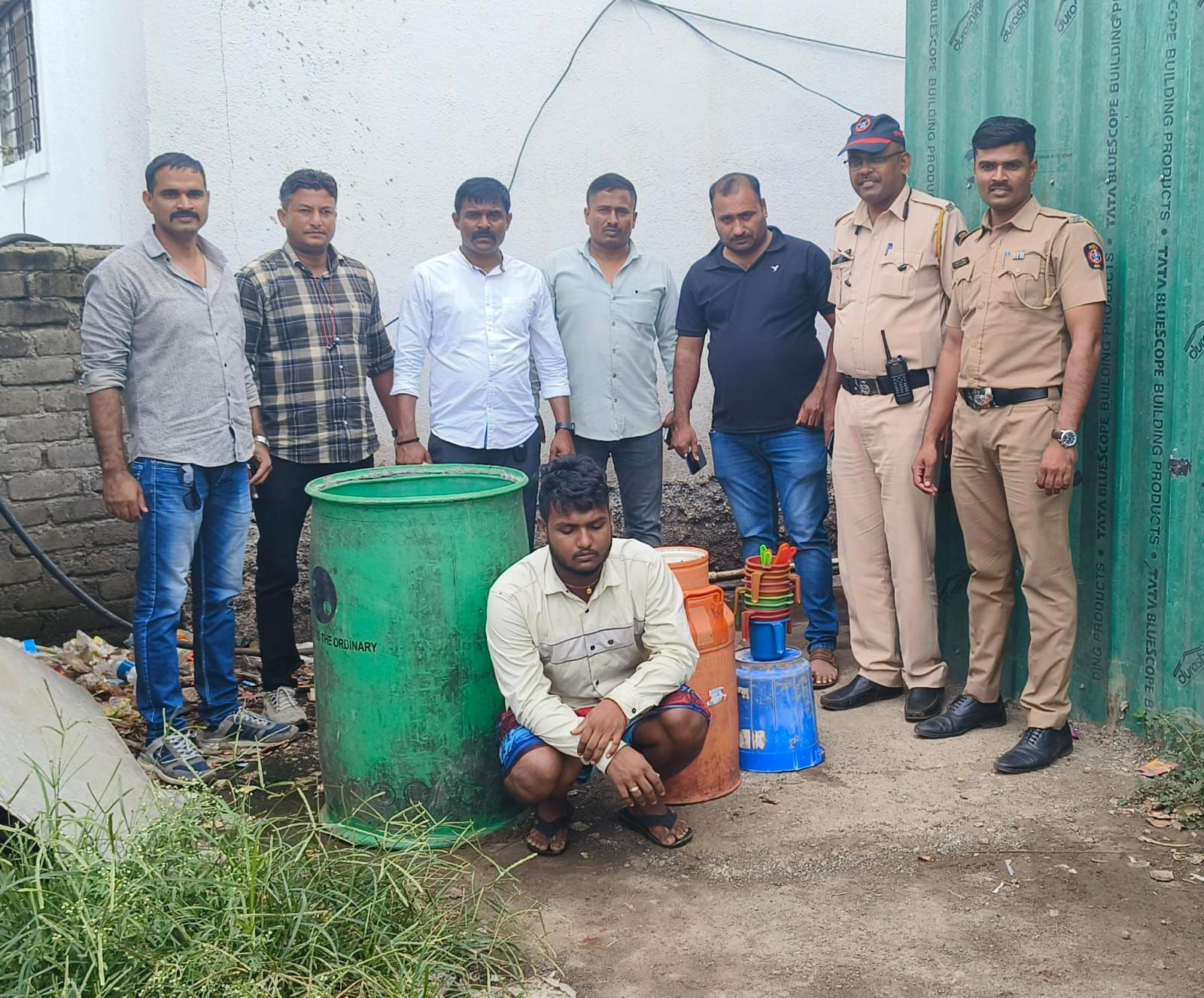 पोलिसांनी दिलेल्या माहितीनुसार गुरुवारी (४जुलै) गुन्हे शाखा युनिट-६ चे पथक हद्दीत गस्तीवर असताना पोलीस अंमलदार ऋषीकेश व्यवहारे यांना पेरणे गावचे हद्दीत कोळपे वस्ती येथे ओढ्यालगत एक महिला दारूभट्टी लावून दारू काढत असल्याची खात्रीशीर माहिती मिळाली. सदर ठिकाणी पथकाने अचानकपणे छापा घातला. माधुरी रमेश परदेशी (वय ४७ रा. कोळपे वस्ती, पेरणे ता. हवेली जि. पुणे) हातभट्टी लावून दारू काढताना मिळून आली. तिचे ताब्यातील तुरटी, नवसागर, गूळ मिश्रित, लोखंडी बॅरल, दोन हजार लीटर कच्चे रसायन, ३५ लीटर तयार गावठी दारू असा एकूण ९० हजार रुपये किमतीचा मुद्देमाल मिळुन आला आहे. तिचेविरुद्ध लोणीकंद पोलीस स्टेशनमध्ये महाराष्ट्र दारूबंदी कायद्यान्वये गुन्हा नोंद करण्यात आला आहे.