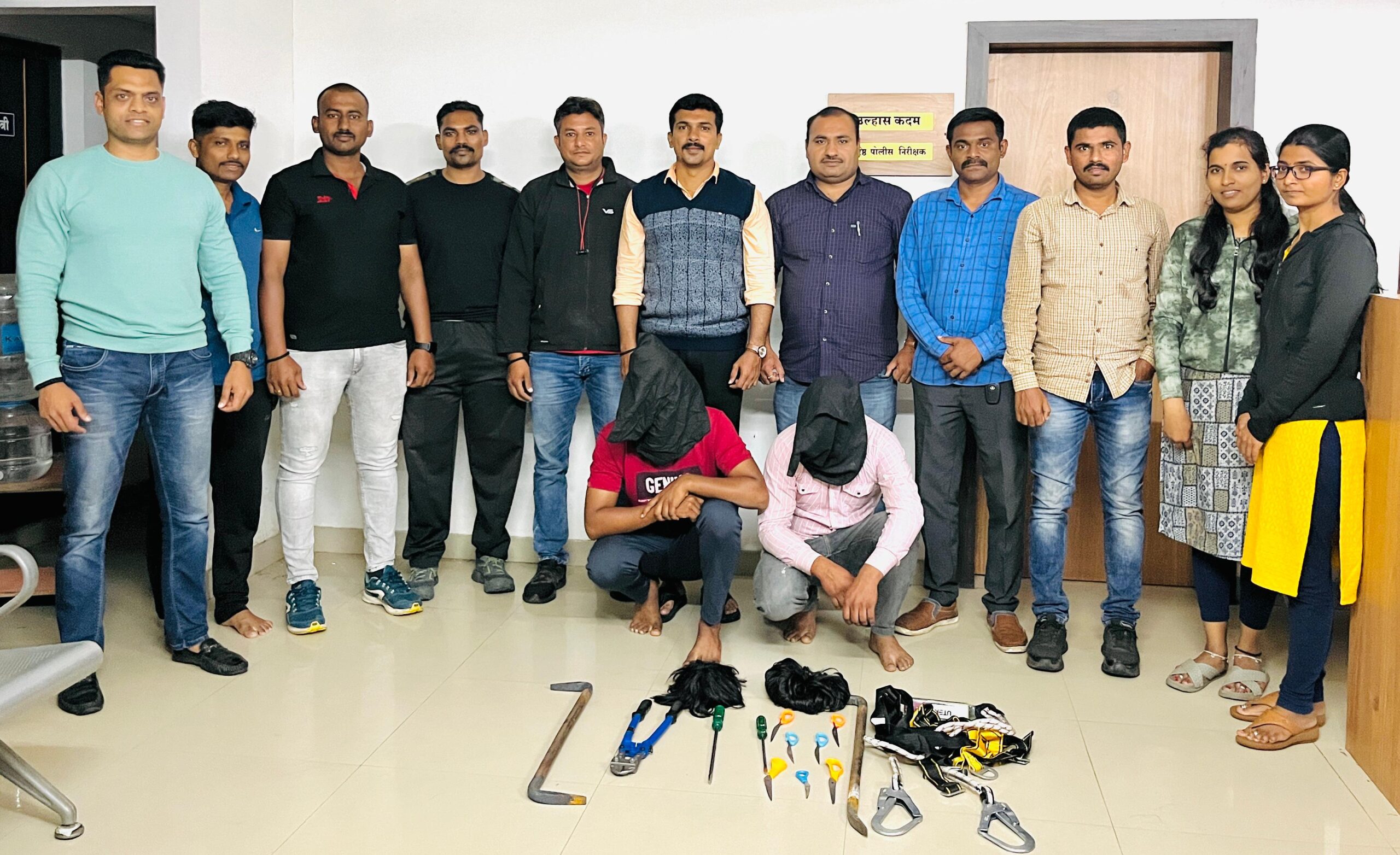 पोलिसांनी दिलेल्या माहितीनुसार गुरुवारी (दि. २५जुलै) गुन्हे शाखा युनिट-६ चे पथक हद्दीमध्ये गुन्हे प्रतिबंधक गस्त करत असताना पोलीस नाईक नितीन मुंढे यांना वाघोली येथील घरफोडीतील आरोपी वाघोली ते भावडी रोडवर भैरवनाथ मंदिराजवळ मोकळया जागेत चोरीचे वाहनांसह थांबले असल्याची खात्रीशीर माहिती बातमीदारामार्फत मिळाली. युनिट-६ च्या पथकाने सदर ठिकाणी सापळा रचला. पोलीस आले असल्याचे समजताच दोघे संशयित पळून जावू लागले. परंतु युनिट-६ च्या पथकाने मोठ्या शिताफीने त्यांना ताब्यात घेतले. त्याची चौकशी केली असता इको गाडीत येऊन इतर साथिदारांसह वाघोली येथील गणेश ज्वेलर्सचे शटर उचकटून घरफोडी केल्याची कबुली दिली.