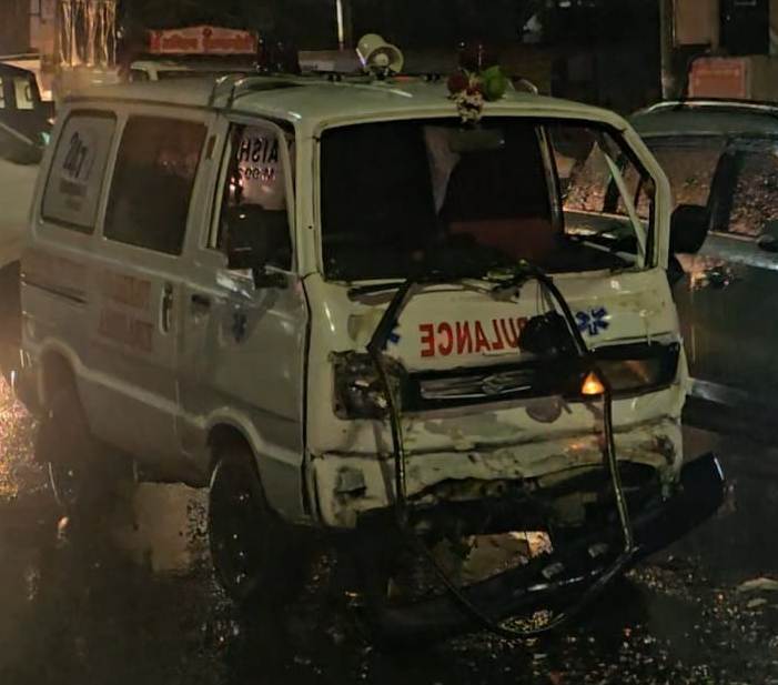 कटकेवाडी फाटा येथे ॲम्बुलन्सचा अपघात