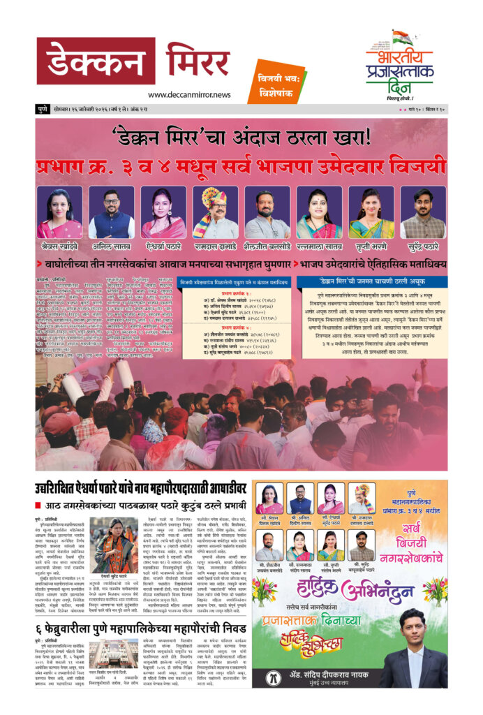 पुणे महानगरपालिका निवडणुकीच्या पार्श्वभूमीवर काढलेल्या ‘डेक्कन मिरर’च्या विजयी भव: विशेषांकाला मिळाला उदंड प्रतिसाद.! या प्रवासात सोबत असलेल्या सर्व वाचकांचे आणि हितचिंतकांचे आभार..!! 🙏🏻