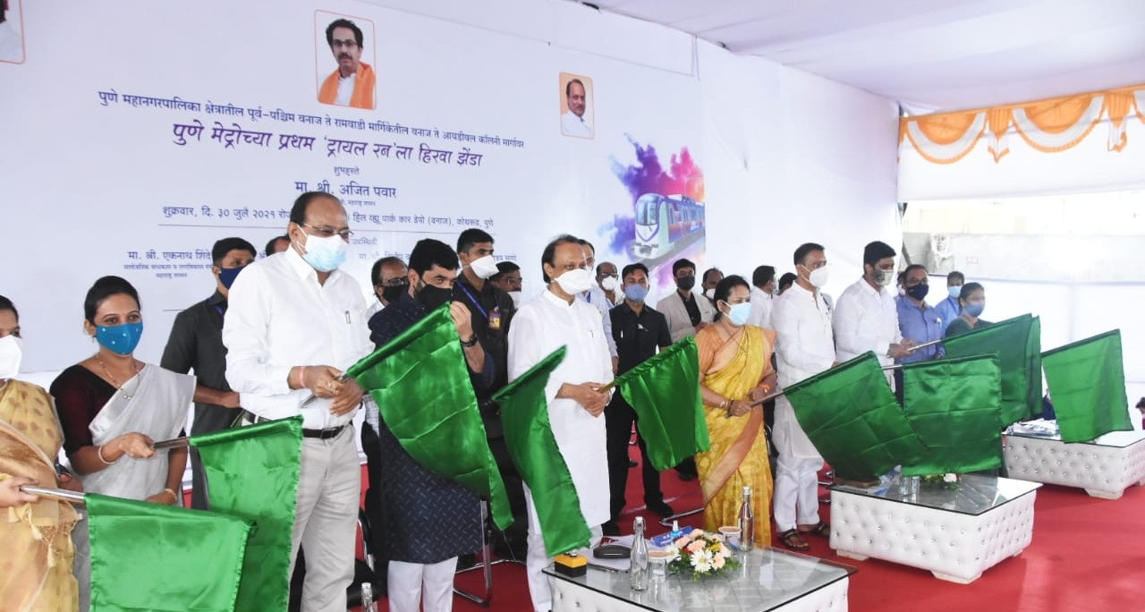 अजित पवार यांच्या हस्ते पुणे मेट्रोच्या पहिल्या औपचारिक 'ट्रायल रन'ला हिरवा झेंडा