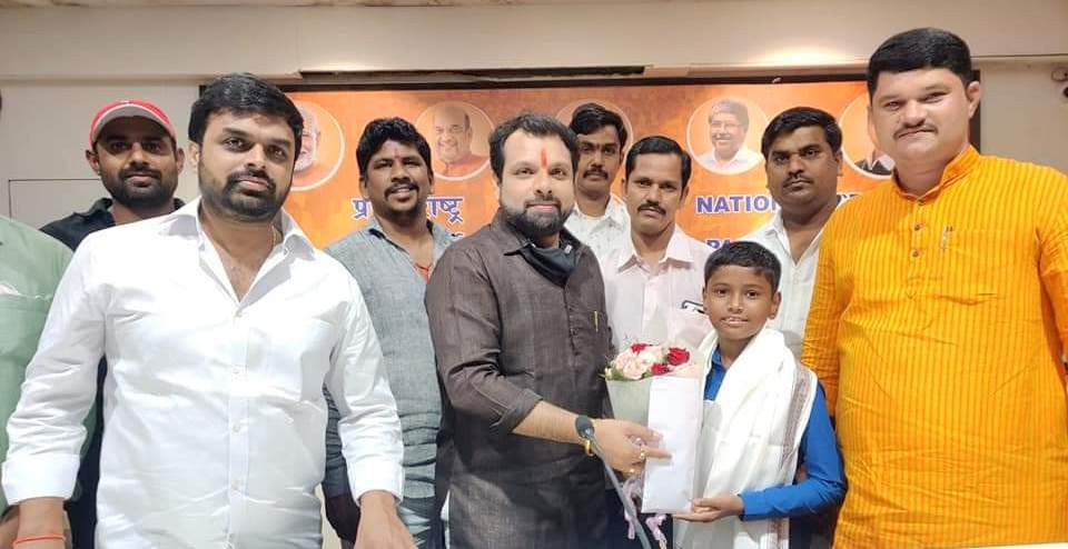 भाजप युवा मोर्चाच्या वतीने बारा वर्षीय सोहमचा गौरव