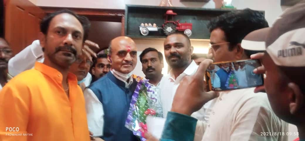 हिंगोली जिल्ह्यात जन आशीर्वाद यात्रा दरम्यान हिंगोली विधानसभा सोशल मिडिया अध्यक्ष पद्माकर नायक यांचा वाढदिवस केंद्रीय अर्थ राज्यमंत्री डॉ. भागवत कराड यांच्या उपस्थितीत साजरा करण्यात आला. केंद्रीय अर्थ राज्यमंत्री डॉ. भागवत कराड, हिंगोली विधान सभा भाजपचे आमदार तान्हाजी मुटकुळे यांच्यासह पदाधिकारी व कार्यकर्त्यांनी पद्माकर नायक यांना वाढदिवसाच्या शुभेच्छा दिल्या.